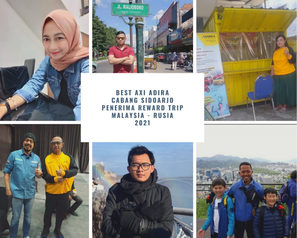 Adira Sidoarjo. Saat yang ditunggu 6 AXI Cabang terbaik yang terdaftar melalui Adira Cabang Sidoarjo kembali mendapatkan apresiasi Reward Bisnis Trip Semester satu 2021. Diantaranya